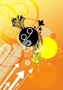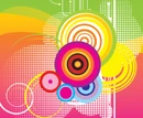 Frutiger Metro's visual style is defined by its vibrant and often glossy use of vector graphics. This aesthetic employs abstract shapes, flowing lines, and intricate patterns, characterized by crisp, geometrically neat outlines and a distinct lack of hand-drawn elements. Compositions are typically maximalist, featuring an abundance of overlapping forms, gradient blocks, and a wide array of bright, saturated colors. A digital sheen and translucent effects are often present. Common visual motifs include abstract flowers, striped circles, flourishes, stars, splats, human silhouettes, and elements related to music such as speakers, DJ mixers, and headphones. These designs were created using digital graphic tools, allowing for complex and layered arrangements.