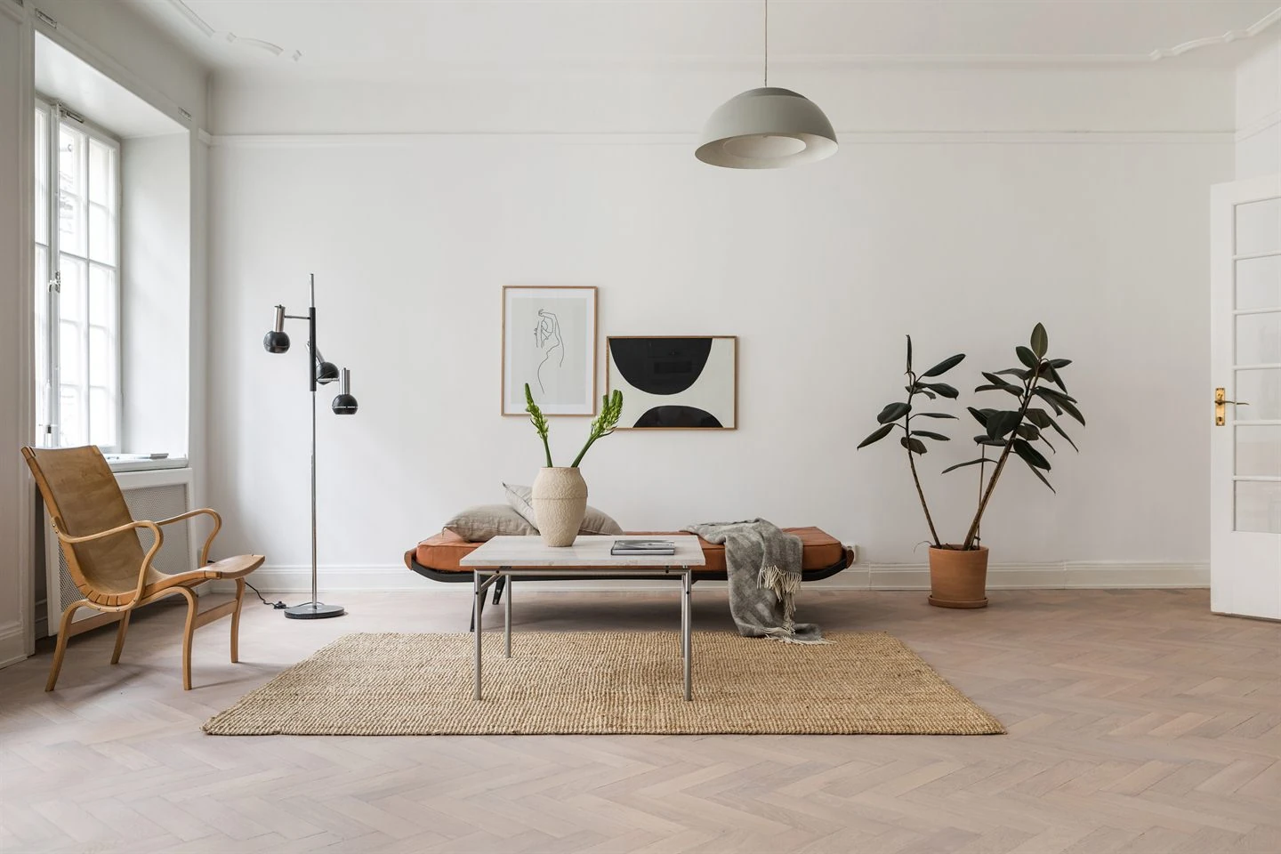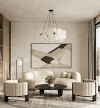 Decorative objects typically incorporate natural elements such as wood, bamboo, and stone. Indoor plants are a popular choice. Textiles tend to be simple and natural, especially materials like linen and cotton in neutral colors. Ceramics and pottery with simple forms and imperfect finishes are used for both functional and decorative purposes. Paintings on walls tend to be minimal and abstract, or depict natural/folk themes.