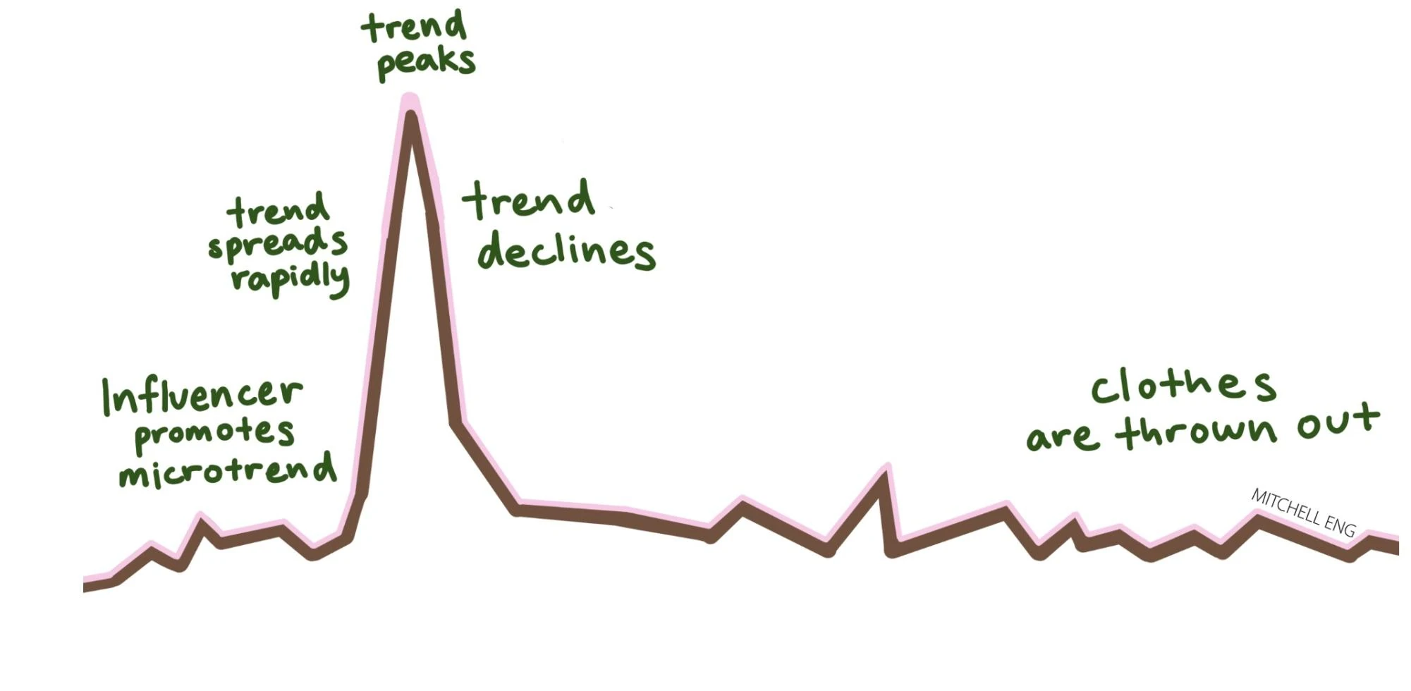 Microtrends are often criticized for their negative impact on consumption habits and the environment. Being short-lived fashion trends, clothing and accessories bought by individuals to fit these aesthetics often end up as waste, contributing to the ultra-fast fashion industry. This is driven by brands like Shein and Temu, known for their ultra-fast fashion model, which offer inexpensive clothing that frequently falls apart quickly due to poor construction and the use of cheap materials. These clothes pose serious environmental and health hazards.