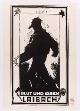 The ambiguity of Laibach's political imagery is exemplified by the woodcut "The Thrower" (Metalec). The monochrome silhouette of a figure holding a hammer can be interpreted as both promoting industrial protest and celebrating industrial pride. The prominent display of the word "LAIBACH" in the woodcut evokes the Nazi occupation of Slovenia.