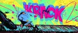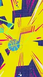 Compositions are typically dense, layered, and maximalist, often featuring characters engulfed in an explosion of graphic elements. Recurring motifs include halftone dot patterns, onomatopoeia, paint splatters, sharp geometric shards, pixelation, glitch effects, and direct gaming iconography like controllers and headsets. Typography is often integrated directly into the artwork as a dynamic design element.