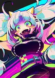 Pop Kei (ポップ系, Poppu Kei) is a Japanese graphic design and illustration style that gained prominence in the 2010s. It is defined by an intensely vibrant and energetic visual presentation, utilizing high-saturation, neon color palettes, maximalist compositions, and the fusion of anime-style characters with abstract graphic elements drawn from Pop Art and digital culture. The aesthetic is most prominently associated with the J-core (Japanese Hardcore) electronic music scene, modern rhythm games, and select works of animation.[1]