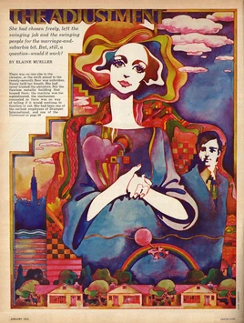 Psychedelic fashion emerged in the 1960s as a direct reflection of the era's social and political shifts, heavily influenced by the "LSD trip" experience that heightened the appreciation for line, texture, and color. This aesthetic was characterized by bold patterns and vibrant hues, designed to enhance and externalize altered states of consciousness. It began in urban youth enclaves and quickly gained media attention, influencing both mass-market manufacturers and haute couture designers. Early examples included go-go boots, culottes, mini-skirts, and more experimental items like PVC clothing and box-shaped dresses, though these were less common in daily wear.[2]