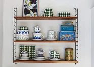 Danish Pastel is an aesthetic that gained popularity among Gen Z in the 2020s, influenced by Scandinavian design and maximalism. It features pastel-colored furniture and accessories against white walls. Common motifs include candles, pastel plastic bins, faux green leaf garlands, flowers in vases, pastel posters, curvy mirrors, wavy checkerboard rugs, and small ceramic dishes.