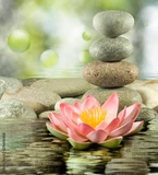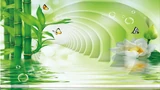 Tranquil Serenity (also known as Frutiger Zen) is a digital design aesthetic that achieved high visibility approximately in the 2000s and 2010s, primarily used in commercial wellness, home decor (e.g., 3D wallpapers), and application interface design. The aesthetic is defined by the mass-market CGI rendering of visual motifs traditionally associated with East Asian tranquility and meditation. It often shares visual techniques with Frutiger Aero and Y2K Futurism, particularly the use of digital sheen, lush saturation, and fluid CGI effects to create scenes of idealized, serene nature.