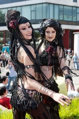 The movement emerged organically in the 1990s as dancers within the Goth subculture began performing at clubs and themed events. These performers started adapting the vocabulary of belly dance to fit gothic rock, industrial, and other dark alternative music. Over time, this fusion solidified into a recognized style, with a dedicated following that grew through online communities in the early 2000s.[1] The establishment of festivals like Gothla in the US and UK further cemented Gothic Belly Dance as a distinct international movement with its own workshops, star performers, and community.[1]