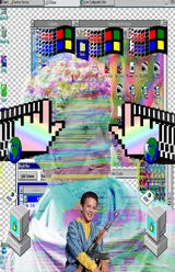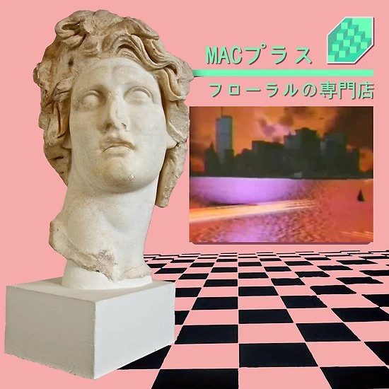 The aesthetic's visual style is a distinct collage that blends certain elements of 1980s interior design evocative of malls and lobbies (classical Greco-Roman statues and columns,[1][2][3] palm plants, pink and cyan pastel colors, tiled floors), Japan's 1980s economic boom, television, 1990s web design, early CGI, and logos of obsolete brands.